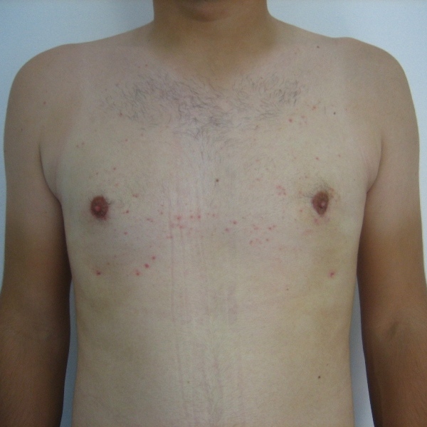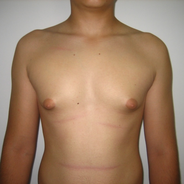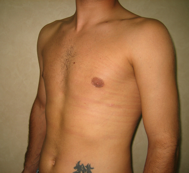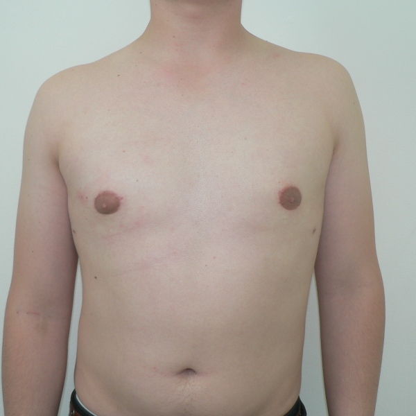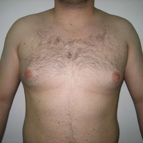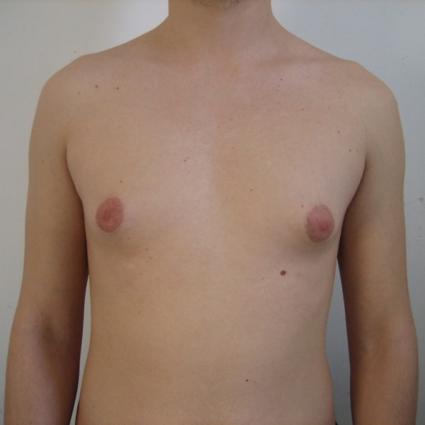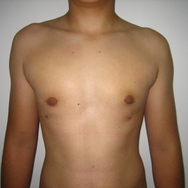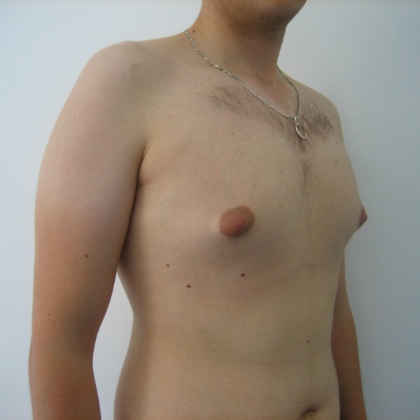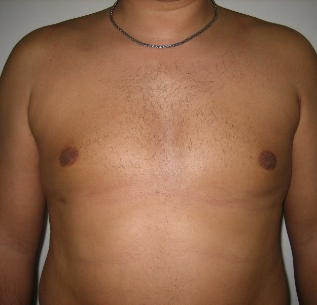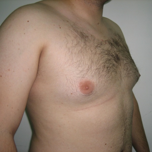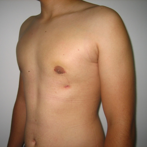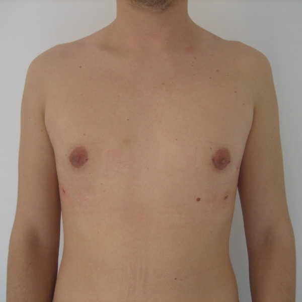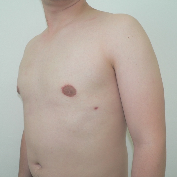 Barbat 22 ani, lipoaspiratie in zona sanilor si excizia glandei mamare, rezultat la 1 an postoperator