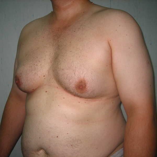 Pacient 25 ani, lipoaspiratie si excizia glandei, rezultat la 2 saptamani postoperator. |