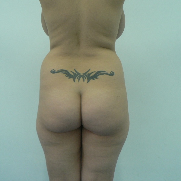 Lipoaspiratie abdomen si flancuri bilateral, excesul de grasime se introduce in fese (350 cc/fesa), rezultat postoperator la 6 saptamani. |
