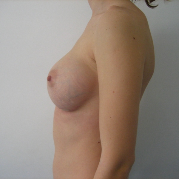 Augmentare mamara bilaterala si usoara ridicare doar cu implante anatomice Natrelle 335 g FM full height moderate projection introduse subpectoral prin abord inframamar, rezultat la 2 luni postoperator. |