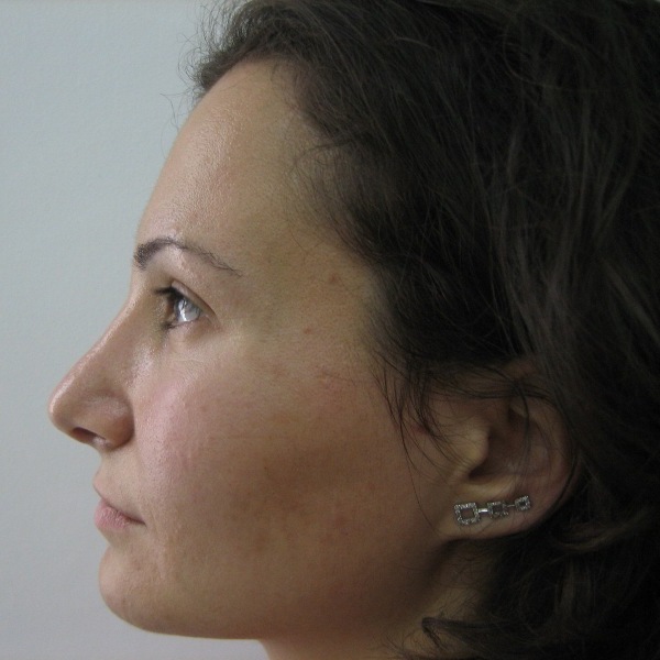 Pacienta 25 ani, rinoplastie deschisa primara si tratamentul deviatiei de sept, rezultat la 4 luni postoperator |