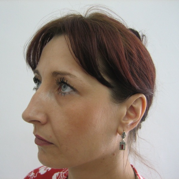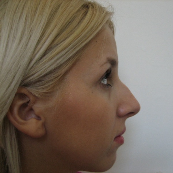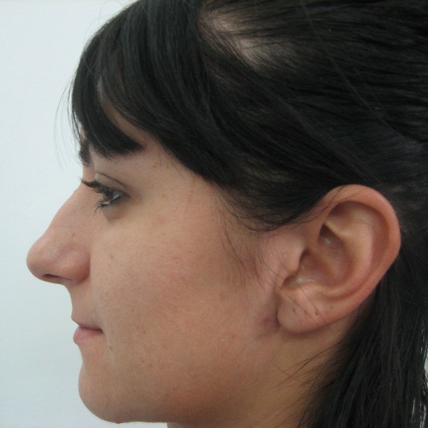 Pacienta 23 ani, rinoplastie deschisa primara si tratamentul deviatiei de sept, rezultat la 7 luni postoperator |