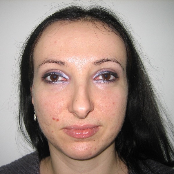 Pacienta 22 ani, rinoplastie deschisa primara si tratamentul deviatiei de sept, rezultat la 7 luni postoperator |