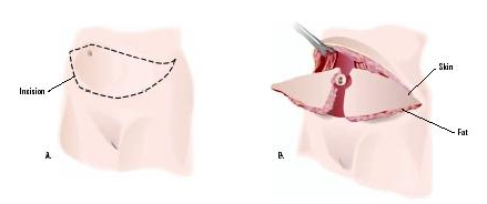 Abdominoplastia traditionala/clasica - este procedura cea mai frecvent realizata; implica realizarea unei incizii orizontale de la o spina iliaca la cealalta , ca si o incizie in jurul buricului a carui pozitie este mutata; se poate asocia cu lipoaspiratia.