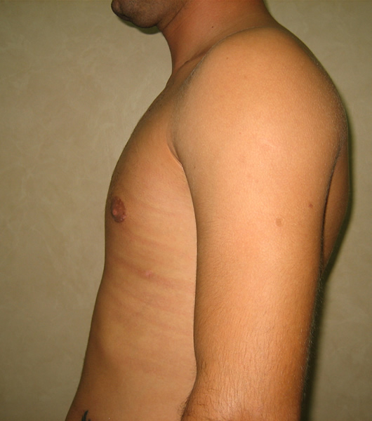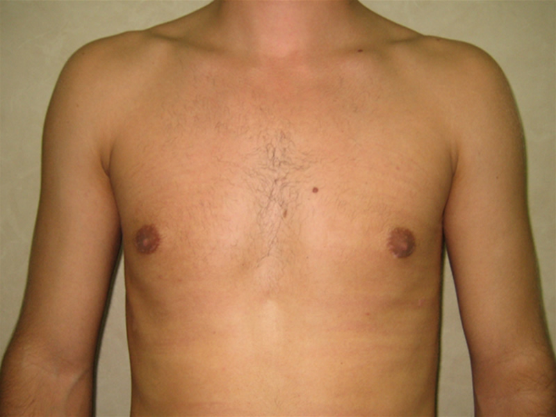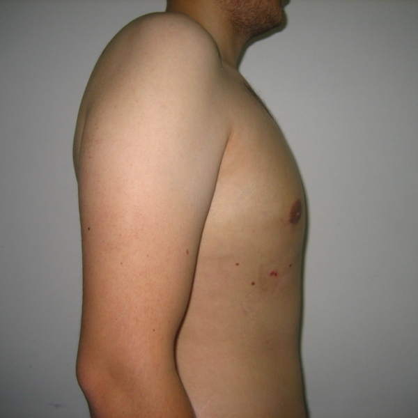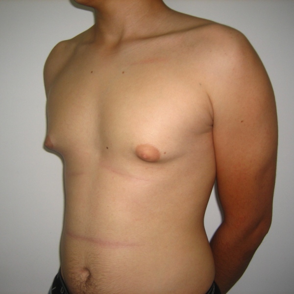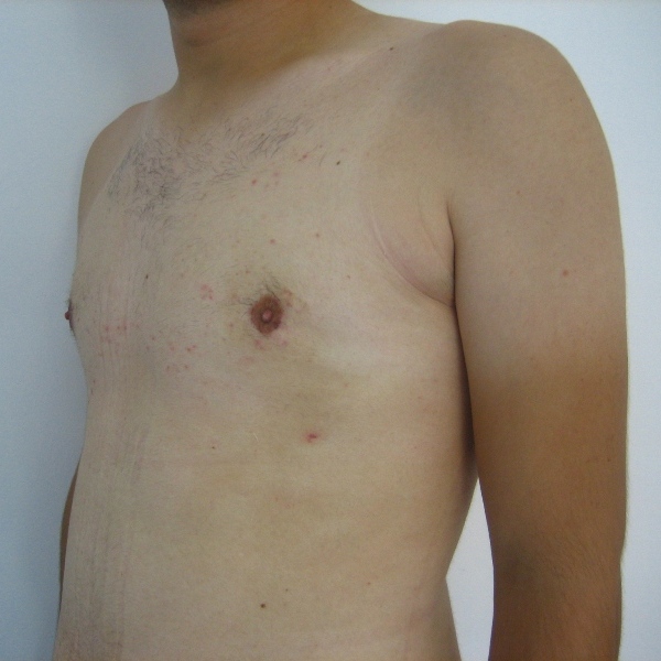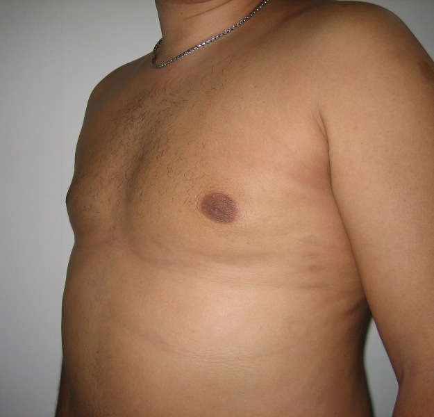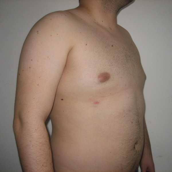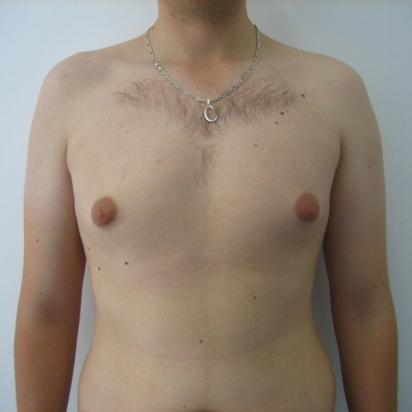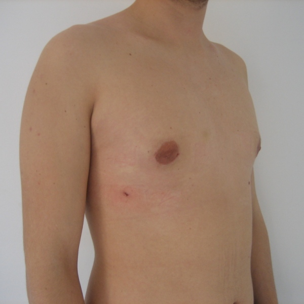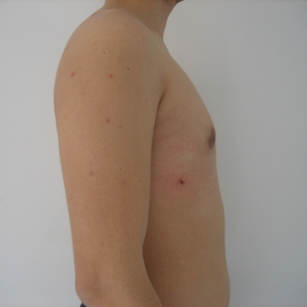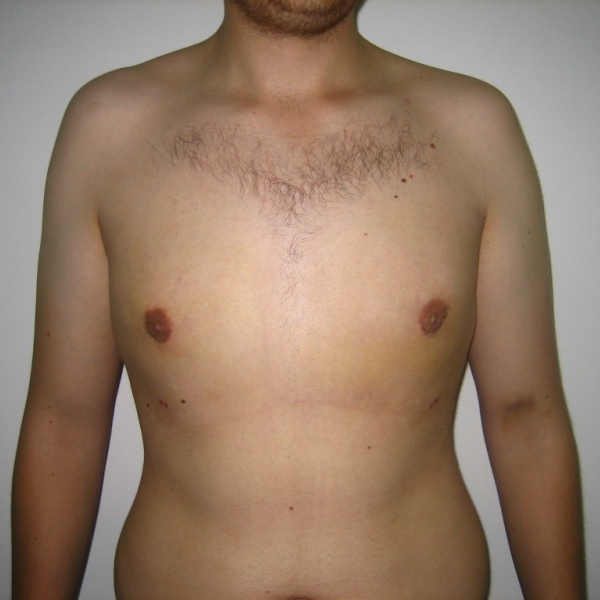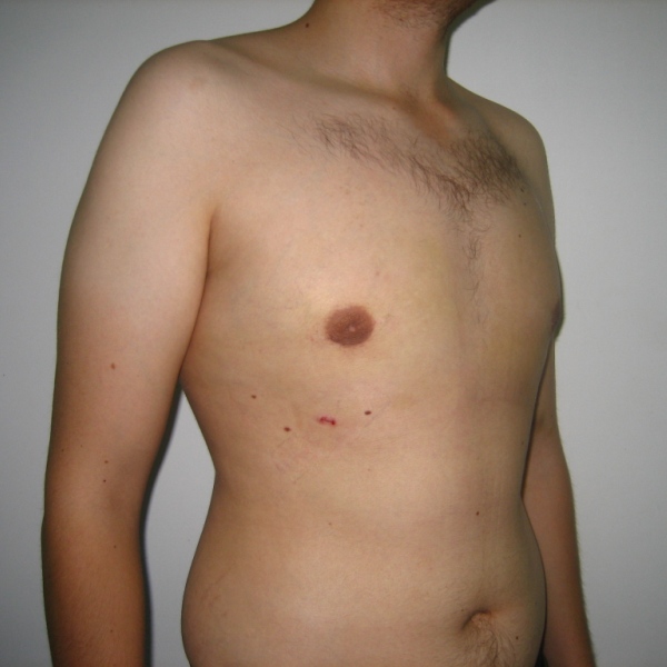Barbat 22 ani, lipoaspiratie in zona sanilor si excizia glandei mamare, rezultat la 1 an postoperator
