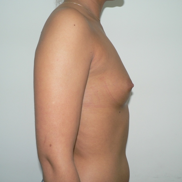 Pacienta, 23 ani, augmentare mamara cu implante Mentor 325 cc rotunde profil moderat plus, introduse subpectoral prin abord inframamar. Rezultat la 4 luni postoperator. |