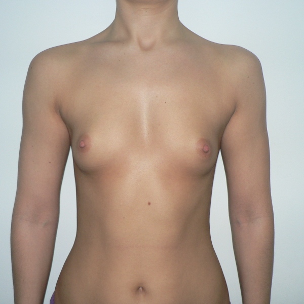 Augmentare mamara bilaterala cu implante Mentor anatomice 345 cc medium heght high profile introduse submuscular prin abord inframamar, rezultat la 1 luna postoperator. |