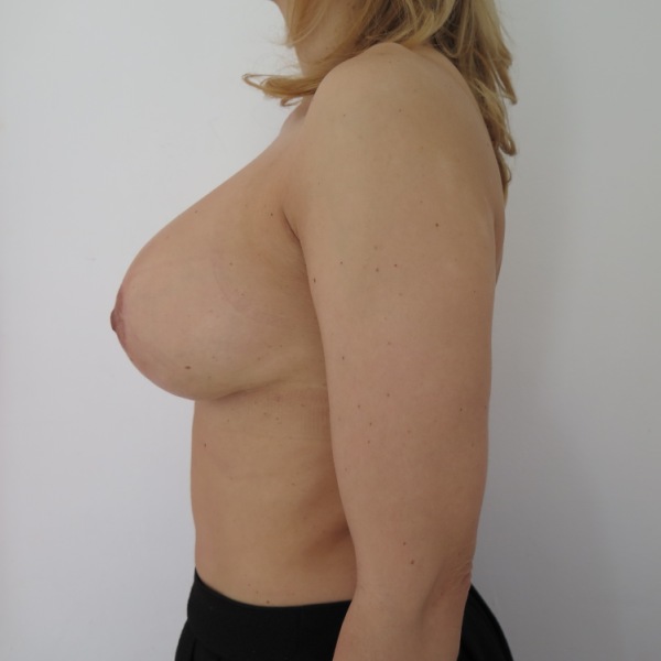 Ptoza mamara gradul 3. Lifting mamar si augmentare (la dorinta pacientei) cu implante Natrelle rotunde 180 g TSF profil inalt introduse subpectoral si cicatrice in T inversat. Rezultat la 2 luni postoperator. |