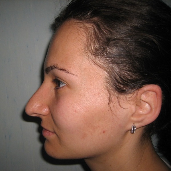 Pacienta 22 ani, rinoplastie deschisa primara si tratamentul deviatiei de sept, rezultat la 7 luni postoperator |