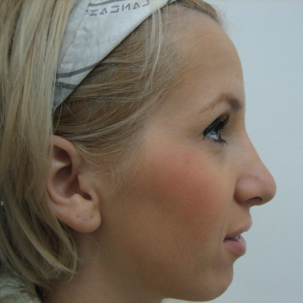 Pacienta 23 ani, rinoplastie deschisa primara si tratamentul deviatiei de sept, rezultat la 7 luni postoperator |