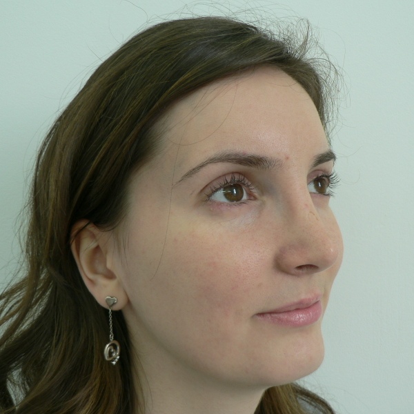 Pacienta, 25 ani, rinoplastie si corectia deviatiei de sept, rezultat la 4 luni postoperator. |